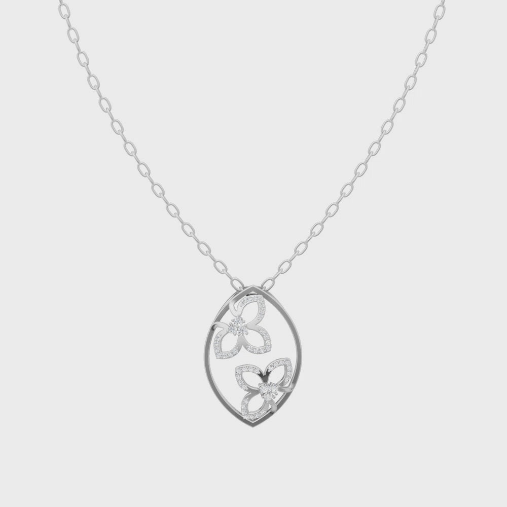 A delicately contoured pendant featuring twin floral motifs enclosed within a graceful teardrop frame. Designed to symbolize growth, harmony, and inner beauty, this elegant piece offers a soft sparkle and timeless charm—perfect for everyday sophistication or heartfelt gifting.