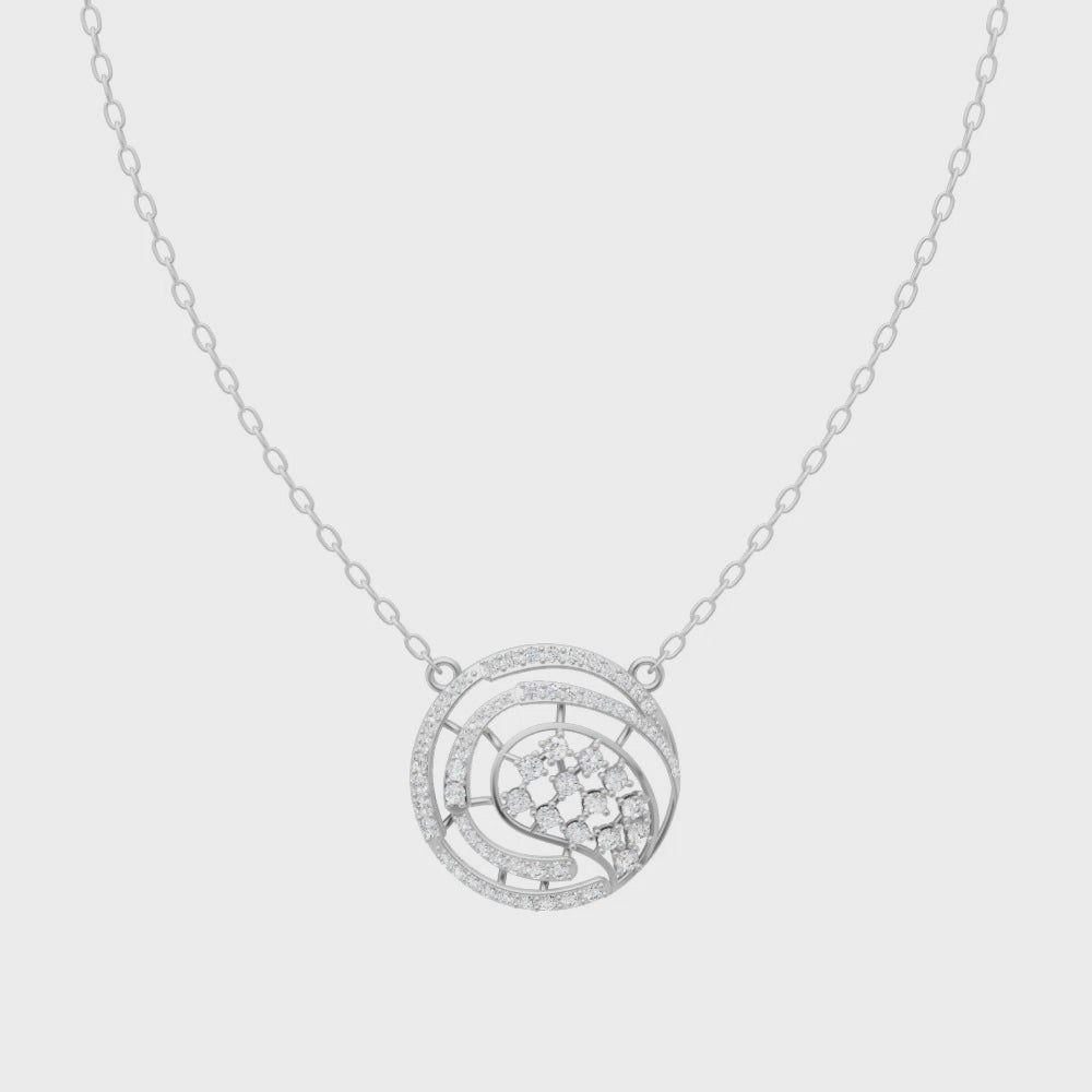 Inspired by celestial harmony and floral beauty, the Bloom Circle Pendant features a mesmerizing circular design with delicate diamond accents arranged in a blooming pattern. Crafted in polished silver, its layered structure creates depth, movement, and radiant sparkle. A timeless symbol of elegance and balance, this pendant is perfect for elevating both everyday wear and special occasions.