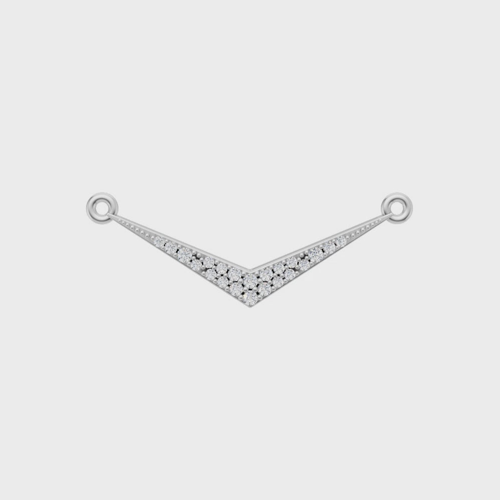 A sleek V-shaped diamond connector designed to add modern elegance to any jewelry piece. Crafted with precisely set sparkling stones, this versatile element reflects light beautifully and enhances the overall design with a refined, minimalist charm. Perfect for necklaces, bracelets, or custom creations, it blends contemporary style with timeless sophistication.