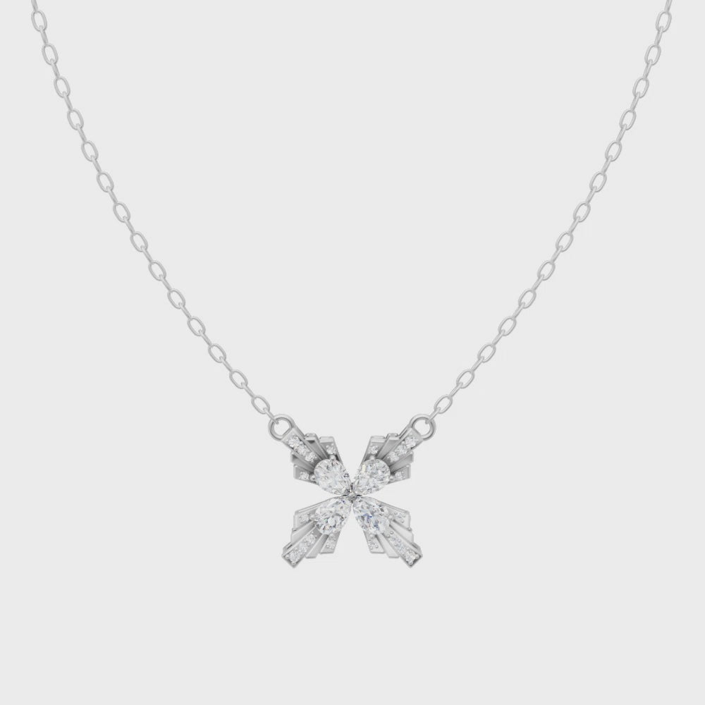 Gracefully designed to captivate, the Crystal Bloom Bow Pendant features a radiant bow-inspired silhouette adorned with brilliant stones at its heart. Crafted in polished silver, its layered structure creates a mesmerizing play of light, symbolizing elegance, femininity, and timeless charm. Perfect for both everyday wear and special moments, this pendant adds a refined sparkle to any outfit.